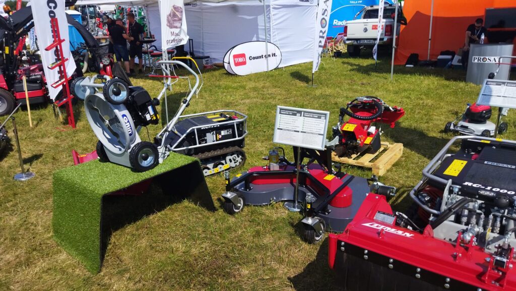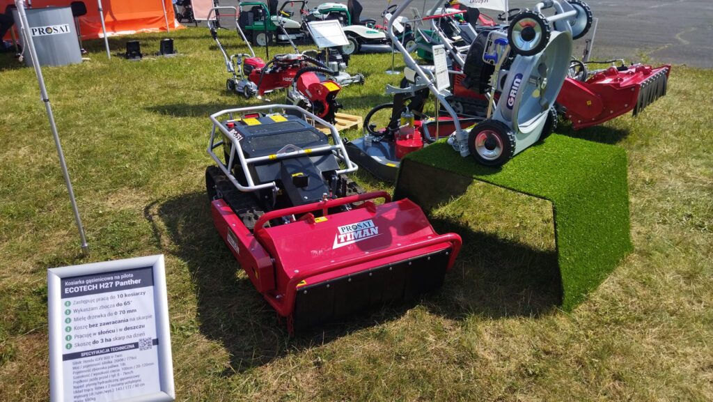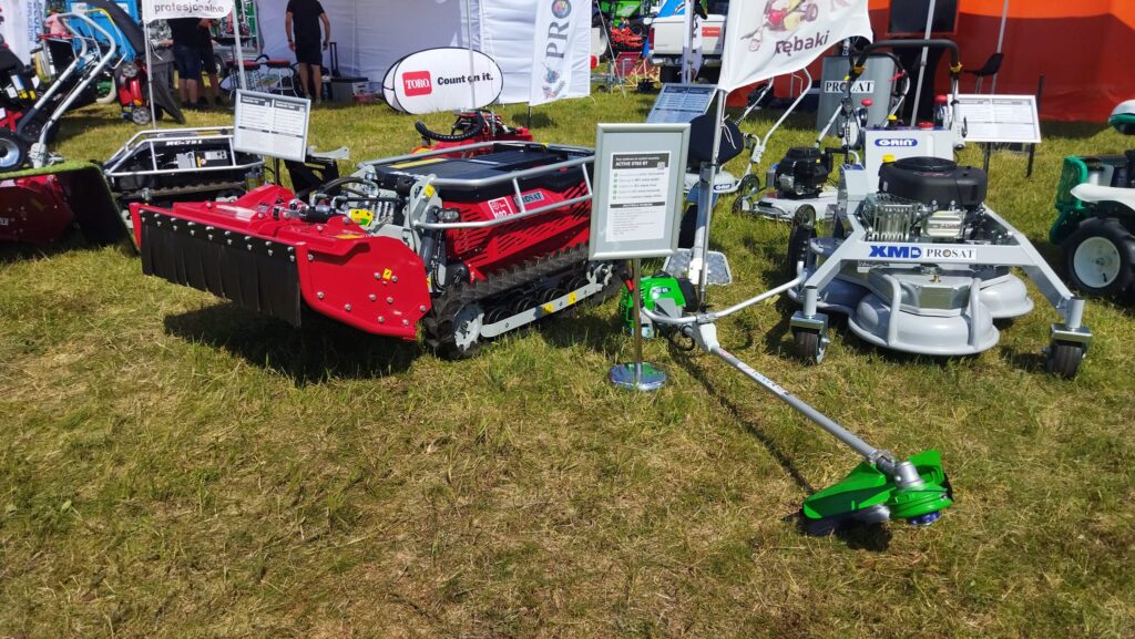 Przedstawiliśmy i omówiliśmy najnowsze roboty koszące bez kabla ograniczającego, z funkcją GPS i sytemem kamer 3D Vision – Mammotion LUBA 2 AWD. Pokazaliśmy kosiarki gąsienicowe, sterowane radiowo TIMAN, przeznacozne na farmy fotowoltaiczne oraz Ecotech na zbocza i tereny o duzym nachyleniu. Mieliśmy również na naszym sotisku japońskie karczownice OREC oraz włoskie kosiarki ultramielące, rozpylające marki GRIN.