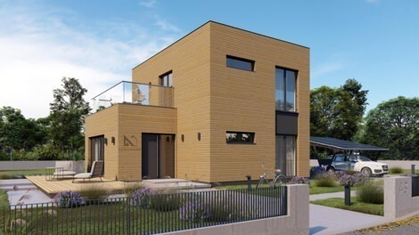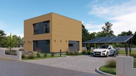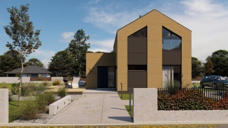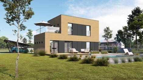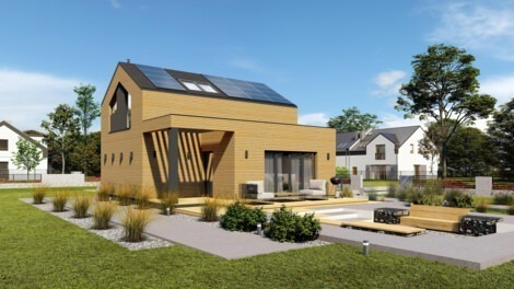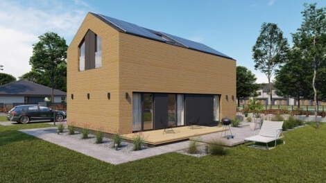 Dom w nowoczesnym stylu z dużym tarasem (częściowo zadaszonym) dla rodziny 2+1.