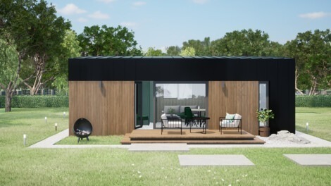 Dom Vang to zwarta parterówka z dachem płaskim i attykami. Dom jest idealny dla dwóch dorosłych osób.